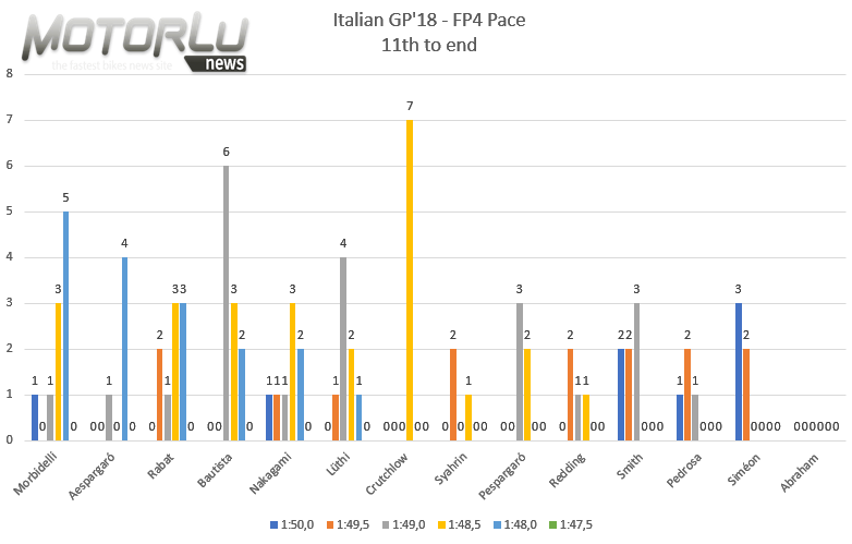 En este grupo sale favorecido Aleix Espargaró, que si su motor le permite superar a rivales, podría optar a una posición en el top10. Rabat, por su parte, se tendrá que defender de Bautista y Nakagami, incluso Crutchlow parece que podría llegar a amenazar su plaza.